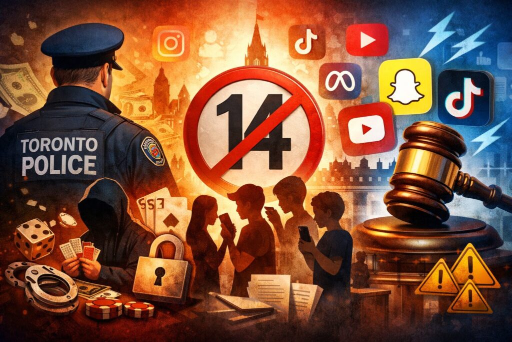 In this week’s GME3, York Regional Police say a retired Toronto officer is facing charges tied to an alleged credit-based illegal gambling ring where debts were allegedly collected with threats and violence; Ottawa is reportedly weighing a tougher age gate as part of a revamped online harms bill, including a possible social-media ban for kids under 14 (and the question of who would enforce it); and in the U.S., Snap has quietly stepped out of a looming “tech addiction” trial by settling, while Meta, TikTok, and YouTube stay in the hot seat. Read the full stories below!